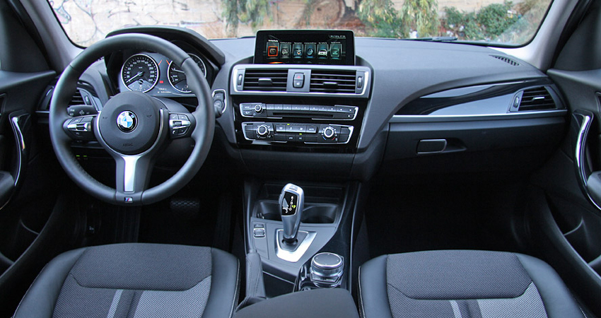 Στο εσωτερικό της ανανεωμένης Σειράς 1 οι αλλαγές εστιάζονται στο ταμπλό και συγκεκριμένα στα νέα χειριστήρια της κεντρικής κονσόλας. Η σχεδίαση παραμένει ως είχε πριν την ανανέωσή της, ενώ η ποιότητα κατασκευής είναι κορυφαία για άλλη μια φορά. Η θέση οδήγησης έχει μεγάλο εύρος ρύθμισης, η εργονομία τόσο από τους επιμέρους διακόπτες όσο και από το σύστημα πολυμέσων iDrive (με ελληνικό μενού) είναι πολύ καλή και ο πίνακας οργάνων ευανάγνωστος. Οι χώροι είναι επαρκείς για 4 επιβάτες με κάποιες παραχωρήσεις στο διαθέσιμο ύψος και πλάτος από εκείνους που το ύψος τους είναι άνω του μέσου όρου. Θήκες υπάρχουν αρκετές για μικροαντικείμενα. Ο χώρος αποσκευών έχει όγκο 360 λίτρα και ικανοποιεί με το σχήμα του, ενώ με την αναδίπλωση της πλάτης των πίσω καθισμάτων φτάνει στα 1.200 λίτρα.