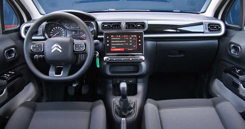 Όπως προαναφέραμε το νέο Citroen C3 έχει καταφέρει κάτι μοναδικό. Να είναι ιδιαίτερο σχεδιαστικά, χωρίς να θυσιάζει βασικά στοιχεία της κατηγορίας όπως η ευρυχωρία της καμπίνας επιβατών και του χώρου αποσκευών. Στο εσωτερικό του, η σχεδιαστική φιλοσοφία παραμένει ίδια με αυτή του αμαξώματος. Η ομοιότητα με το C4 Cactus είναι εμφανής. Η εικόνα που σου δίνουν τα υλικά που έχουν χρησιμοποιηθεί είναι καλή και παρόλο που η συναρμογή τους και το φινίρισμά τους σε πείθει. Το ίδιο ισχύει και για την πρακτικότητα της καμπίνας η οποία έχει τα πάνω της και τα κάτω της. Στα συν φυσικά οι μεγάλες τσέπες στις πόρτες εμπρός και πίσω, οι θήκες μικροαντικειμένων και το ευρύχωρο ντουλαπάκι συνοδηγού. Στα πλην σίγουρα οι ποτηροθήκες με μικρή διάμετρο που δεν χωρούν μεγάλα ποτήρια καφέ και μπουκαλάκια νερού. Εργονομικά, το νέο C3 ακολουθεί τη λύση της οθόνης αφής, στην οποία συγκεντρώνονται όλες οι λειτουργίες του αυτοκινήτου, από ηχοσύστημα και κλιματισμό μέχρι επικοινωνία με συνδεδεμένα κινητά τηλέφωνα και σύστημα πλοήγησης (όπου διατίθεται). Κάτι που δεν βρήκαμε αρκετά εργονομικό, καθώς πρέπει να κοιτάς την οθόνη ακόμη και για την αλλαγή θερμοκρασίας στο σύστημα κλιματισμού.