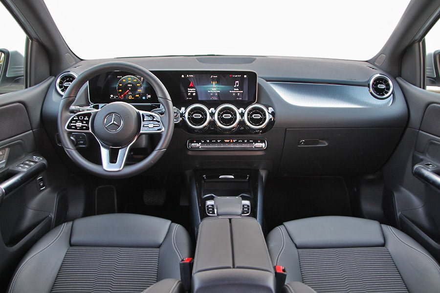 Το εσωτερικό της Β 200 εμφανίζει διαφορές στο σχεδιασμό από εκείνο της νέας A-Class. Ωστόσο, το κεντρικό τμήμα του ταμπλό με τις δύο ψηφιακές οθόνες του συστήματος MBUX (στάνταρ είναι 7 ιντσών έκαστη και προαιρετικά έως 10,25 ιντσών) και τα επιμέρους στοιχεία είναι ίδιο. Σε επίπεδο κατασκευής, τα υλικά είναι ποιοτικά και μαλακά, με πολύ καλή συναρμογή η οποία πείθει ότι θα αντέξει στο χρόνο.