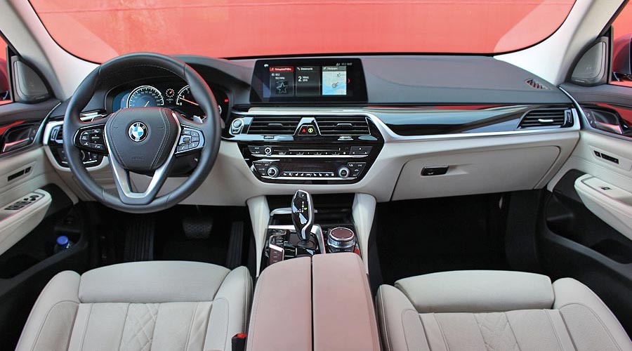 Δεν θέλει και πολύ φαντασία εδώ που τα λέμε για να καταλάβεις πως το εσωτερικό της BMW Σειρά 6 GT είναι ένα αμάλγαμα τεχνολογίας και ποιοτικών υλικών. Και ανοίγοντας την πόρτα το καταλαβαίνεις. Η χειρολαβή είναι αφής και με το που την αγγίζει ξεκλειδώνει το αυτοκίνητο, εφόσον αναγνωρίσει το high tech κλειδί με την έγχρωμη οθόνη αφής. Με το που κάθεσαι στη θέση του οδηγού το δερμάτινο κάθισμα σε αγκαλιάζει και τα μάτια σου ταξιδεύουν για μια πρώτη αναγνώριση στον πίνακα οργάνων και στην οθόνη του ταμπλό (10,25 ίντσες). Εξαιρετικά υλικά παντού, οθόνες με ευκρίνεια που θα ζήλευε ο… υπολογιστής σου και συναρμογή που μοιάζει ακλόνητη. Φυσικά αν έχεις εμπειρία από άλλα μοντέλα της BMW, όπως η Σειρά 5 δεν θα βρεις αλλαγές στην σχεδίαση, η οποία δίνει προτεραιότητα στην εργονομία και στις σχεδιαστικές λεπτομέρειες. Όσον αφορά στην πρακτικότητα και στην εργονομία του αυτοκινήτου, μείναμε ικανοποιημένοι. Θήκες για αντικείμενα υπάρχουν πολλές, οι τσέπες στις πόρτες εμπρός και πίσω είναι μεγάλες, το ίδιο και το υποβραχιόνιο, ενώ ο χώρος για τέσσερις επιβάτες είναι υπεραρκετός (ο σχεδιασμός του πίσω καθίσματος με το εξόγκωμα στο κέντρο και το τούνελ δαπέδου κάνουν την ύπαρξη μεσαίου επιβάτη σχεδόν απίθανη). Από την άλλη, ο χώρος αποσκευών είναι μεγάλος καθώς ξεκινά από τα 610 λτ. και με την αναδίπλωση των πίσω καθισμάτων φτάνει στα 1.800 λτ.