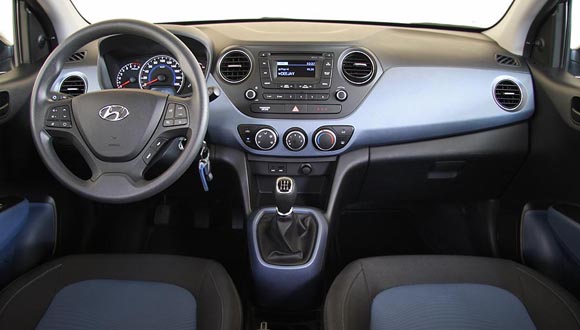 Πλήρως ανανεωμένο με την σειρά του είναι και το εσωτερικό του νέου i10 με την ευχάριστη συνολικά εικόνα και τα νεανικά χαρακτηριστικά. Το διάκοσμο αναβαθμίζει σημαντικά η διχρωμία στο ταμπλό, κονσόλα, πόρτες και καθίσματα (μαύρο – μπλε στο αυτοκίνητο της δοκιμής). Στον τομέα της κατασκευής του εσωτερικού, όλα τα πλαστικά είναι σκληρά και ικανοποιούν με την ποιότητα και την συναρμογή τους, ωστόσο δεν απουσίαζαν μικροτριγμοί από διάφορα σημεία της καμπίνας. Επίσης, στις εμπρός τουλάχιστον πόρτες θα ήταν προτιμότερο να υπήρχε επένδυση υφάσματος ή κάποιο αφρώδες υλικό έστω στο σημείο που ακουμπούν οι αγκώνες. Από πλευράς εργονομίας και θέσης οδήγησης δεν υπάρχει κάποιο παράπονο, όπως και με τις αρκετές θέσεις που υπάρχουν για αποθήκευση διαφόρων μικρών αλλά και μεγαλύτερων αντικειμένων. Τα επιμέρους χειριστήρια είναι εύχρηστα, ο επιλογέας των ταχυτήτων είναι σωστά και βολικά τοποθετημένος ψηλά. Πλήρης και με ευδιάκριτες ενδείξεις είναι ο πίνακας οργάνων με το μεγάλο ταχύμετρο και στροφόμετρο και τις ψηφιακές ενδείξεις του trip computer στο κάτω μέρος. Πολύ ικανοποιητικοί για τα δεδομένα των μίνι αυτοκινήτων είναι και οι διαθέσιμοι χώροι τόσο για τους επιβάτες όσο και για τις αποσκευές, με τα 252 λτ. να το κατατάσσουν μεταξύ των κορυφαίων της κατηγορίας.