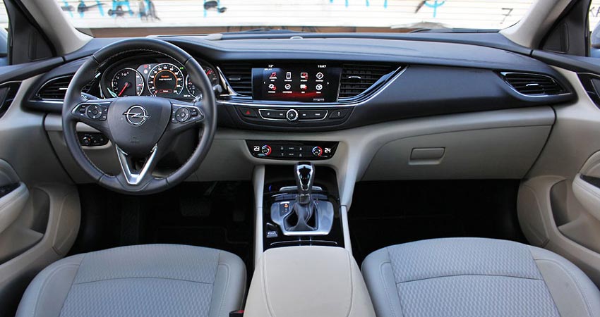 Όπως είναι λογικό οι αλλαγές δεν έμειναν στο αμάξωμα και συνεχίστηκαν και στο εσωτερικό. Εκεί οι σχεδιαστές της Opel φρόντισαν ώστε να είναι πιο μοντέρνο σχεδιαστικά, προηγμένο τεχνολογικά, ποιοτικό και ευρύχωρο. Το εσωτερικό του νέου Insignia Grand Sport, ακολουθεί το σχεδιαστικό προφίλ των νέων μοντέλων της μάρκας και διαθέτει σημαντικά βελτιωμένη εργονομία. Το ταμπλό διακρίνεται από τις μεγάλες επίπεδες επιφάνειες, τις απαλές καμπύλες, το μικρότερο τιμόνι και τα σημαντικά λιγότερα χειριστήρια στην κεντρική κονσόλα. Πολλές λειτουργίες ελέγχονται μέσω της στάνταρ οθόνης αφής των 8 ιντσών του συστήματος πολυμέσων, το οποίο περιλαμβάνει -μεταξύ άλλων- και 4G/LTE Wi-Fi Hot spot. Επιπλέον, στην έγχρωμη οθόνη των 4,2 ιντσών στον πίνακα οργάνων προβάλλονται διάφορες χρήσιμες πληροφορίες, ενώ με πολύ καλή ευκρίνεια απεικονίζονται στο εμπρός παρμπρίζ διάφορες ενδείξεις μέσω του προαιρετικού head-up display. Πολλά είναι και τα συστήματα υποστήριξης του οδηγού, όπως η αναγνώριση επικείμενης σύγκρουσης με αυτόματη ενεργοποίηση πέδησης έκτακτης ανάγκης, η αναγνώριση σημάτων κυκλοφορίας, η υποβοήθηση διατήρησης πορείας, η προειδοποίηση σύγκρουσης εμπρός και το Opel OnStar. Η θέση οδήγησης θα βολέψει τους πάντες καθώς έχει μεγάλο εύρος ρυθμίσεων, σε συνδυασμό με τις ρυθμίσεις στο τιμόνι φυσικά. Μαλακό πλαστικό υπάρχει σε ολόκληρη την επιφάνεια του ταμπλό, στην κεντρική κονσόλα και στο πάνω μέρος των θυρών. Η συναρμογή πάντως είχε κάποιες μικροατέλειες. Ιδιαίτερα γενναιόδωρο είναι το εσωτερικό σε επίπεδο διαθέσιμων χώρων, αφού στο πίσω κάθισμα ακόμα και ψηλά άτομα έχουν πολύ αέρα για τα πόδια τους. Το πορτμπαγκάζ είναι 490 λίτρων. Με την αναδίπλωση των καθισμάτων φτάνει τα 1.450, ενώ η ύπαρξη πέμπτης πόρτας συνεπάγεται και τεράστιο άνοιγμα που διευκολύνει με τη σειρά του την φόρτωση/εκφόρτωση.