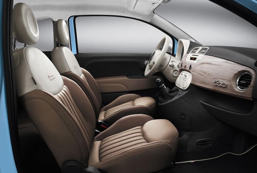 Αλλαγές έχουμε πάντως και στο εσωτερικό του ξεχωριστού αυτού Fiat 500, με το ταμπλό να αποκτά μια πολύ όμορφη επένδυση σε βουρτσισμένο ξύλο. Τα καθίσματα επενδύονται επίσης με ξεχωριστές δερμάτινες επενδύσεις σε καφέ και λευκό χρώμα, ενώ καφέ επενδύσεις φέρουν και τμήματα του εσωτερικού των θυρών. ʼλλες αλλαγές στο γνωστό μας 500 δεν υπάρχουν και το μόνο που μένει είναι η Fiat να μας ανακοινώσει εάν και πότε βάλει στην παραγωγή το πολύ όμορφο αυτό 500αράκι της.
