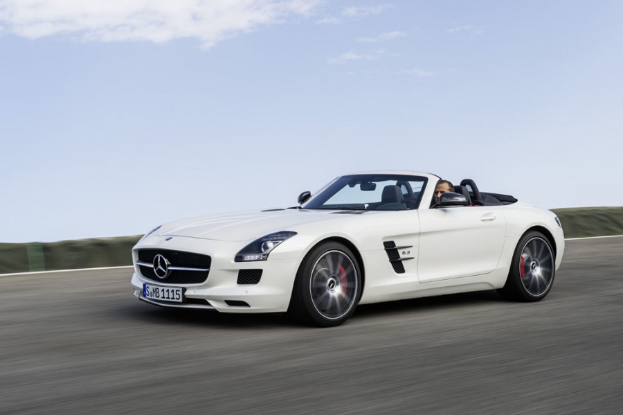 Στο άνω άκρο των διθέσιων σπορ αυτοκινήτων τοποθετείται το supercar SLS AMG Roadster με το χαρακτηριστικό μακρύ καπό των σχεδόν δύο μέτρων μήκους και τον κοντό πίσω πρόβολο. Την κίνησή της αναλαμβάνει ο ατμοσφαιρικός V8 AMG 6.3 λίτρων κινητήρας των 571 ίππων και 650 Nm ροπής, ο οποίος εξασφαλίζει επιτάχυνση στο 0-100 χλμ./ώρα σε 3,8 δευτερόλεπτα και τελική ταχύτητα 317 χλμ./ώρα.
