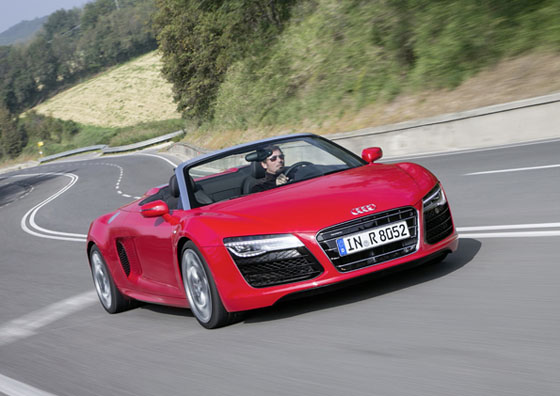 To supercar της Audi διατίθεται και σε ανοιχτή έκδοση Spyder παραμένοντας το ίδιο ξεχωριστό και εντυπωσιακό όπως το Coupe. Η υφασμάτινη οροφή του αναδιπλώνεται σε 19 δλ. και κρύβεται κάτω από το πίσω καπό πάνω από το κεντρικά τοποθετημένο μοτέρ δηλαδή. Εκτός από εντυπωσιακό εμφανισιακά, το R8 τιμά την κατηγορία που ανήκει τόσο με τις επιδόσεις του όσο και με την οδική του συμπεριφορά με το σύστημα τετρακίνησης quattro να μεταφέρει περισσότερη ροπή στον πίσω άξονα (43:57 εμπρός:πίσω).