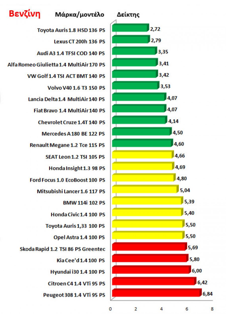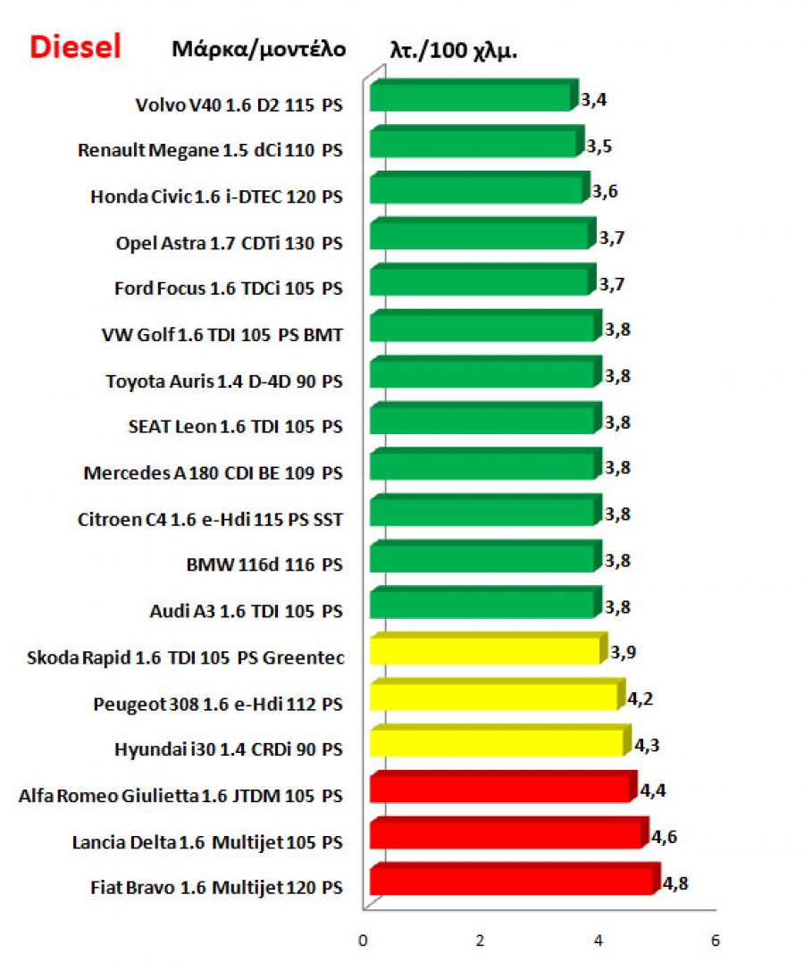 Σε αυτό το αφιέρωμα, το autogreeknews.gr συγκέντρωσε όλα τα μικρομεσαία αυτοκίνητα στις εκδόσεις τους με την χαμηλότερη κατανάλωση καυσίμου, τόσο με τους κινητήρες diesel όσο και βενζίνης. Στους αναλυτικούς πίνακες παρουσιάζονται όλα τα μοντέλα με τις καταναλώσεις τους, ενώ στο δεύτερο γράφημα υπάρχει ένας δείκτης που δείχνει την αναλογία καλύτερου συνδυασμού απόδοσης κινητήρα/κατανάλωσης, ο οποίος όσο χαμηλότερος είναι, τόσο καλύτερη είναι η αναλογία.