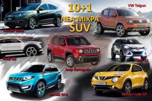 Στην ολοένα αναπτυσσόμενη κατηγορία των μικρών SUV και Crossover αυτοκινήτων αναμένονται να προστεθούν στο άμεσο αλλά και πιο μακρινό μέλλον νέα μοντέλα με ενδιαφέροντα χαρακτηριστικά. Ήδη αυτά που διατίθενται είναι αρκετά, ξεκινώντας από το Nissan Juke, τα πιο πρόσφατα Peugeot 2008 και Renault Captur και τα Opel Mokka και Chevrolet Trax. Από τα νέα SUV σημαντικά είναι το ανανεωμένο Nissan Juke, το ολοκαίνουργιο μικρό Jeep Renegade, το Ford EcoSport και το Honda Vezel, η Hyundai θα παρουσιάσει σύντομα το ix25, ενώ μέσα στα επόμενα δύο χρόνια αναμένουμε το VW Taigun, το Suzuki iV-4, το MG CS, το Mazda CX3 και το Audi Q1, τα οποία σας παρουσιάζουμε παρακάτω με όλες τις τελευταίες πληροφορίες.
