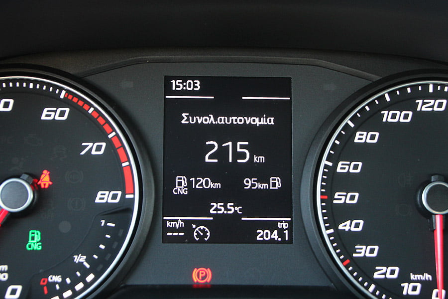 Όπως αναφέραμε παραπάνω, με το Ibiza 1.0 TGI διανύσαμε 204,1 χλμ. σε διάφορες διαδρομές και συνθήκες κίνησης, ενώ η κατανάλωση βρέθηκε στα 4,0 kg/100 χλμ. (3,3 ευρώ/100 χλμ.). Πως πετύχαμε αυτή την κατανάλωση; Χωρίς «μαγικά», με πολύ απλές πρακτικές και κινήσεις, που όλοι μπορούν να ακολουθούν. Δεν κάναμε άσκοπες βίαιες επιταχύνσεις, επιβραδύναμε προοδευτικά και ακολουθούσαμε τις ενδείξεις αλλαγής ταχυτήτων που εμφανίζονται στον πίνακα οργάνων. Στην εθνική οδό ενεργοποιήσαμε το cruise control και ανάλογα τα όρια ταχύτητας πηγαίναμε με 120 χλμ./ώρα (2.600 σ.α.λ. με 6η ταχύτητα) ή 130 χλμ./ώρα (2.900 σ.α.λ.).
