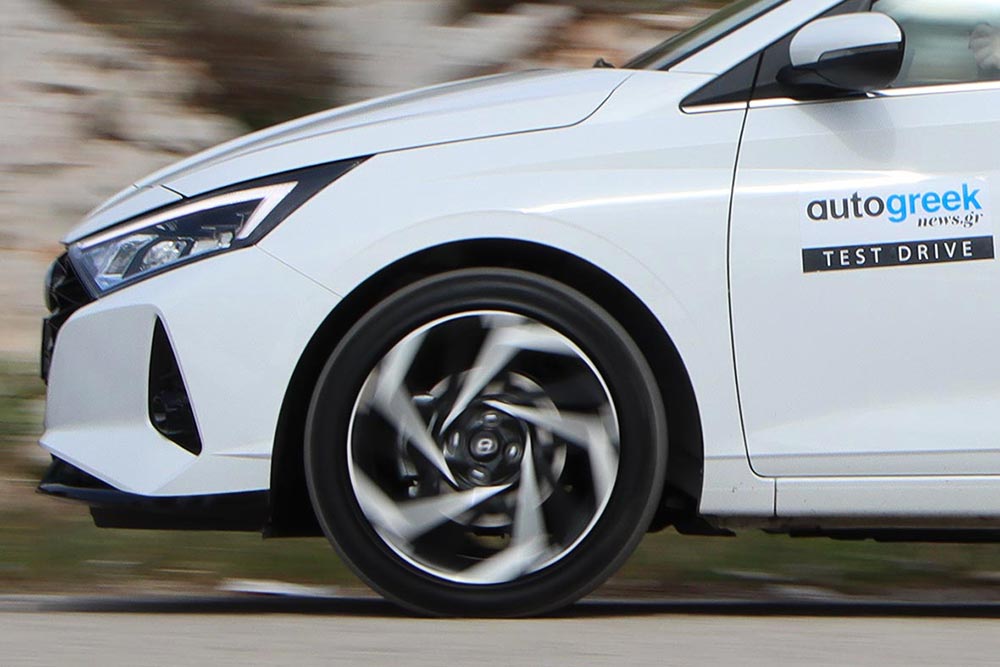 Κάτω από το ανάγλυφο εμπρός καπό του i20 φιλοξενείται ο 3κύλινδρος 1.000άρης T-GDi Smartstream G, ισχύος 100 ίππων στις 4.500 σ.α.λ. και με ροπή 172 Nm στις 1.500-4.000 σ.α.λ. Το μηχανικό αυτό σύνολο με την ισορροπημένη λειτουργία, το θετικό τράβηγμα από τις χαμηλές στροφές και τη γραμμική απόδοση, συνεργάζεται με ένα εύχρηστο μηχανικό κιβώτιο 6 ταχυτήτων. Το βάρους 1.065 κιλών Hyundai επιταχύνει από στάση στα 100 χλμ./ώρα σε 10,4 δευτερόλεπτα και η μέγιστη ταχύτητα αγγίζει τα 188 χλμ./ώρα. Σύμφωνα με τις εργοστασιακές μετρήσεις (WLTP), η μεικτή κατανάλωση βρίσκεται στα 5,4 λτ./100 χλμ. και οι εκπομπές CO2 είναι 118 γρ./χλμ. (μηδενικά τέλη κυκλοφορίας). Επιπλέον, υπάρχουν οι επιλογές με το ήπιο υβριδικό σύστημα 48V και το iMT μηχανικό κιβώτιο ταχυτήτων ή το αυτόματο διπλού συμπλέκτη 7DCT, καθώς και πιο ισχυρή έκδοση 120 ίππων.