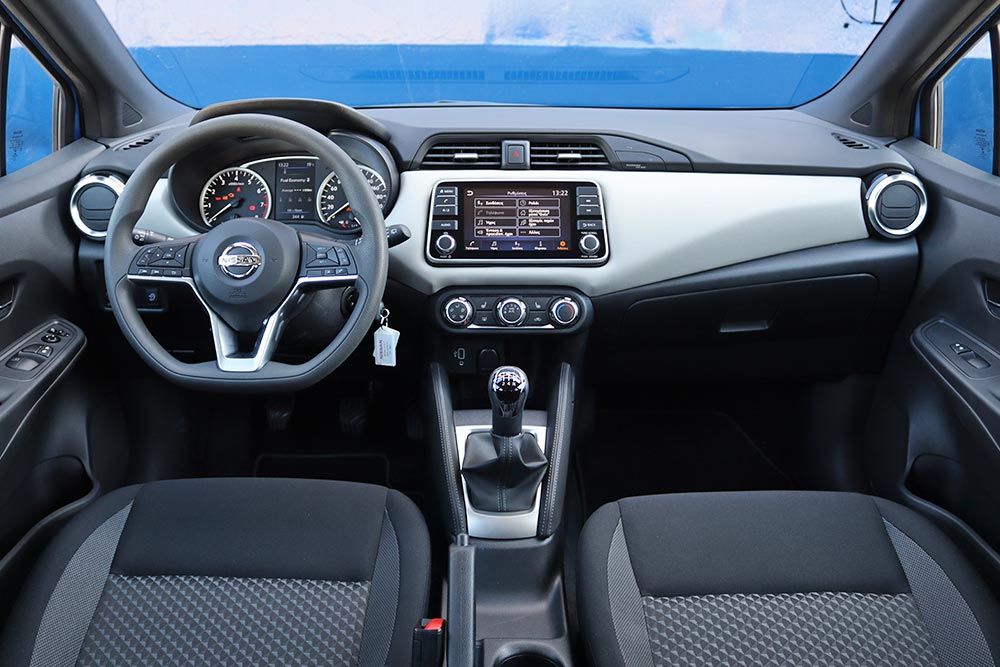 Ο δυναμικός χαρακτήρας του αυτοκινήτου συμπληρώνεται ιδανικά και με τη μοντέρνα εικόνα της καμπίνας του. Η Nissan επέλεξε να «ντύσει» ολόκληρο το ταμπλό με παχύ αφρώδες υλικό, κάτι που βρίσκεις σε ελάχιστα μοντέλα της κατηγορίας του. Από εκεί κι έπειτα θετικά σχόλια αποσπά η εργονομία και η πρακτικότητα, αφού τα πάντα είναι εκεί που τα θέλει και τα περιμένει ο χειριστής του Micra. Τέλος, σε καλό επίπεδο βρίσκονται οι χώροι επιβατών, όπως επίσης και το πορτ μπαγκάζ των 300 λίτρων.