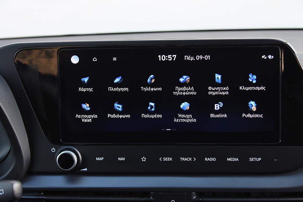 Αναφορικά με τον εξοπλισμό, από την αρχική κιόλας έκδοση Exclusive, το Hyundai i20 παρουσιάζει πληρότητα σε όλους τους τομείς της ασφάλειας και ανέσεων. Διαθέτει οθόνη αφής 10,25 ιντσών με πλοήγηση, τηλεματικές υπηρεσίες Hyundai BlueLink και σύνδεση με smartphone, πλήρως ψηφιακό πίνακα οργάνων 10,25 ιντσών, θύρα USB ταχείας φόρτισης, κάμερα οπισθοπορείας, αισθητήρες παρκαρίσματος πίσω, τα συστήματα αυτόματης έκτακτης πέδησης και υποβοήθησης διατήρησης λωρίδας και αυτόματη ρύθμιση υψηλής σκάλας φώτων. Επίσης, περιλαμβάνει όλα τα ηλεκτρικά «καλούδια», δερμάτινη επένδυση τιμονιού & επιλογέα ταχυτήτων, φώτα ημέρας και θέσεως τεχνολογίας LED και αυτόματη ενεργοποίηση/σβήσιμο μεσαίας σκάλας φώτων. Πολύ σημαντικό είναι ακόμα το γεγονός ότι κάθε νέο i20 καλύπτεται με εργοστασιακή εγγύηση 5 ετών απεριορίστων χιλιομέτρων, ακόμη και για εκατομμύρια χιλιόμετρα, όταν άλλοι κατασκευαστές βάζουν όριο.
