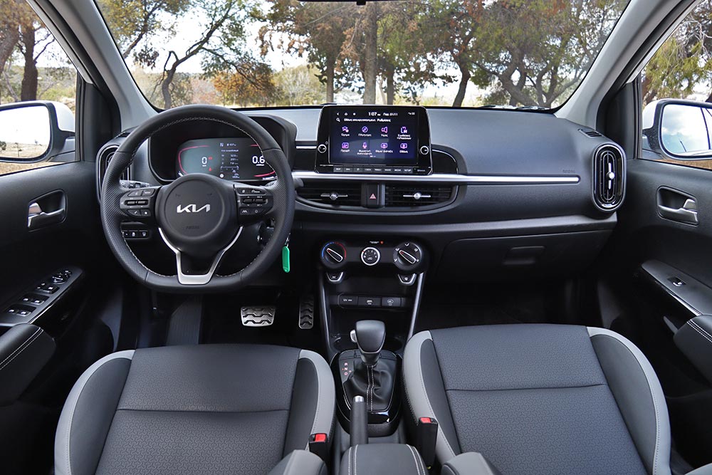 Ανεξαρτήτως έκδοσης, το νέο Picanto με το δυναμικού σχεδιασμού εμπρός τμήμα του αμαξώματός του, διακρίνεται και για τη στιβαρή κατασκευή στο εσωτερικό του, όπου η ποιότητα είναι προσεγμένη. Η καμπίνα του παρέχει αρκετούς χώρους για επιβάτες κανονικού αναστήματος και μεγάλο -για μίνι αυτοκίνητο- χώρο αποσκευών 255 λίτρων. Επίσης, είναι ένα πάρα πολύ εύκολο στην οδήγηση και στους χειρισμούς αυτοκίνητο, ιδανικό για την πόλη και γενικά δρόμους στενούς.