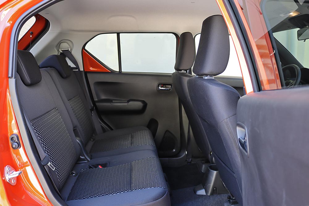 Παρά το γεγονός ότι το Ignis έχει μήκος μόλις 3.700 χιλιοστά, είναι ένα πολύ ευρύχωρο αυτοκίνητο. Στο πίσω κάθισμα θα κάτσουν άνετα και πιο ψηλά άτομα, αφού ο αέρας για τα πόδια είναι πολύς. Το πορτμπαγκάζ των 260 λίτρων είναι καθόλα ικανοποιητικό, ενώ το διαιρούμενο και συρόμενο πίσω κάθισμα (50:50) που περιλαμβάνεται από τη δεύτερη έκδοση GL+, αυξάνει πάρα πολύ την πρακτικότητα. Αρκετά καλή είναι και η ποιότητα κατασκευής, όπως επίσης η εργονομία των επιμέρους χειριστηρίων.
