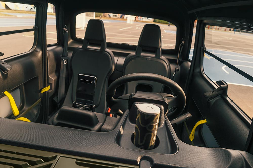 Το Citroen AMI με μήκος 2,41 μέτρα είναι λίγο πιο μακρύ από ένα mega scooter, ωστόσο όσο και να μην του φαίνεται εξωτερικά, το εσωτερικό του είναι πολύ άνετο για δύο επιβάτες, ακόμα και ψηλούς. Την είσοδο στην καμπίνα διευκολύνουν οι πόρτες (ανοίγουν ανάποδα μεταξύ τους) με το ευρύ άνοιγμα, ενώ οι μεγάλες και σχεδόν κάθετες γυάλινες επιφάνειες, ευνοούν την ορατότητα και δίνουν την αίσθηση σε οδηγό και συνεπιβάτη ότι βρίσκονται σε μεγαλύτερο όχημα. Τον πολύ εύκολο χειρισμό του ΑΜΙ ενισχύουν τα τρία πλήκτρα της μετάδοσης, τα D, N και R για εμπρός, νεκρά και όπισθεν αντίστοιχα. Παράλληλα υπάρχει ειδική θήκη στο ταμπλό για να τοποθετείται το smartphone και να μετατρέπεται σε μια multimedia οθόνη μέσω της εφαρμογής My Ami Play της Citroen.