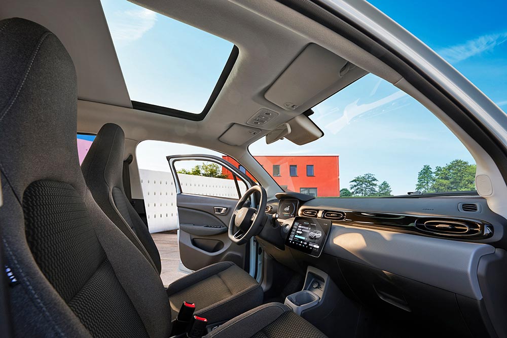 Σχετικά με το Leapmotor T03 είναι ένα μίνι αμιγώς ηλεκτρικό αμάξι με μήκος 3.620 χλστ., πλάτος 1.652 χλστ., ύψος 1.577 χλστ. και μεταξόνιο 2.400 χλστ. Η τιμή του ξεκινά από μόνο 15.844 ευρώ, συμπεριλαμβανομένης της έκπτωσης των 1.000 ευρώ και της κρατικής επιδότησης των 5.056 ευρώ. Κοινώς με τα οφέλη που συνοδεύεται είναι φθηνότερο από τα καινούργια μίνι αυτοκίνητα με βενζινοκινητήρες. Όσο για τον εξοπλισμό του, είναι εντυπωσιακός για ένα τέτοιο αμάξι. Συγκεκριμένα διαθέτει αυτόματο φρενάρισμα, υποβοήθηση διατήρησης λωρίδας, σύστημα ανίχνευσης τυφλών σημείων, 6 αερόσακους, πίνακα οργάνων 8 ιντσών, οθόνη πολυμέσων 10 ιντσών, πανοραμική γυάλινη οροφή, αυτόματο κλιματισμό, όλες τις ηλεκτρικές ευκολίες, κάμερα οπισθοπορείας, πίσω αισθητήρες παρκαρίσματος, ζάντες αλουμινίου κ.λπ.