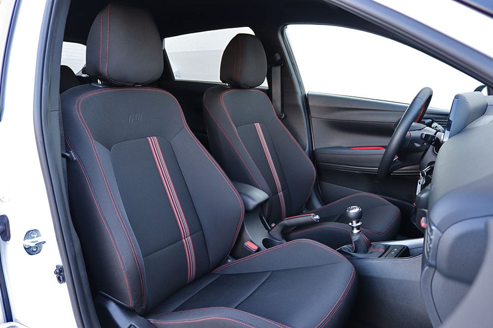 Σπορτίφ στοιχεία συναντώνται και στο εσωτερικό του Hyundai i20 N Line. Τη διαφορά κάνουν αμέσως το τιμόνι με το διάτρητο δέρμα, τα καθίσματα με την ενισχυμένη στήριξη, τα κόκκινα διακοσμητικά, τα αλουμινένια πεντάλ, οι κόκκινες ραφές και ο N επιλογέας των ταχυτήτων. Όσο για τον εξοπλισμό, το αυτοκίνητο είναι φουλ σε όλα του και μεταξύ άλλων διαθέτει: 6 αερόσακους • Αυτόματο φρενάρισμα • Διατήρηση λωρίδας • Ψηφιακό πίνακας οργάνων 10,25 ιντσών • Οθόνη αφής 8 ιντσών • Κάμερα οπισθοπορείας • Αισθητήρες φωτός και βροχής Αισθητήρες παρκαρίσματος • Ηλεκτρικά αναδιπλούμενους καθρέπτες • Αυτόματο κλιματισμό.