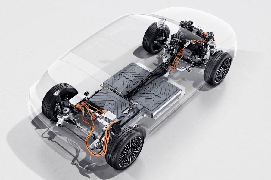 Μια επιπλέον τεχνολογική πινελιά είναι πως το σύστημα πολυμέσων διαθέτει «πλοήγηση με ηλεκτρική νοημοσύνη». Μέσω αυτής της προηγμένης τεχνολογίας, το σύστημα είναι σε θέση να σχεδιάσει την ταχύτερη διαδρομή με σημεία φόρτισης και μπορεί να προσαρμόζεται στις κυκλοφοριακές συνθήκες, ώστε να χαράξει την διαδρομή με την μικρότερη κατανάλωση ρεύματος ή αυτή με τους περισσότερους φορτιστές, όπως αναστολή κυκλοφορίας. Επιπλέον, με το «Mercedes me charge», οι πελάτες θα έχουν πρόσβαση σε ένα δίκτυο 450.000 σημείων φόρτισης σε 31 χώρες, συμπεριλαμβανομένου του δικτύου Ionity.
