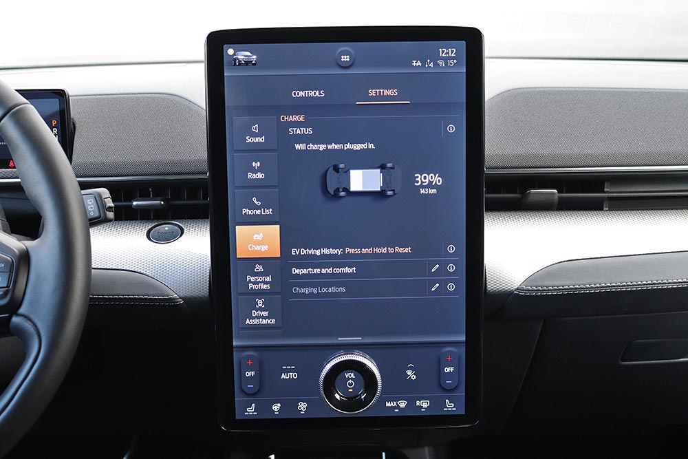 Ακόμα ένα σημείο υπεροχής της Mustang Mach-E είναι ο εσωτερικός της κόσμος, με την καμπίνα να διακρίνεται από την υψηλή τεχνολογία και την πολυτέλεια. Στο κέντρο της κονσόλας συναντάμε τη χορταστική και κάθετα τοποθετημένη οθόνη των 15,5 ιντσών. Μέσω αυτής ελέγχεται το προηγμένο σύστημα πολυμέσων SYNC 4, το σύστημα κλιματισμού και όλες οι λειτουργίες του αυτοκινήτου. Ο οδηγός λαμβάνει την απαραίτητη πληροφόρηση από τον ψηφιακό πίνακα οργάνων με διάσταση 10,2 ιντσών. Παράλληλα, το πολυτελές ηλεκτρικό SUV είναι κι άνετο, φιλοξενώντας με χαρακτηριστική ευκολία μέχρι πέντε επιβάτες. Για τις αποσκευές τους, στο πίσω μέρος υπάρχει το πορτ μπαγκάζ με χωρητικότητα 402 λίτρων, συν άλλα 81 λίτρα κάτω από το εμπρόσθιο καπό (εμπνευσμένο από το Megabox του Puma), ανεβάζοντας τo συνολικό διαθέσιμο όγκο στα 502 λίτρα!