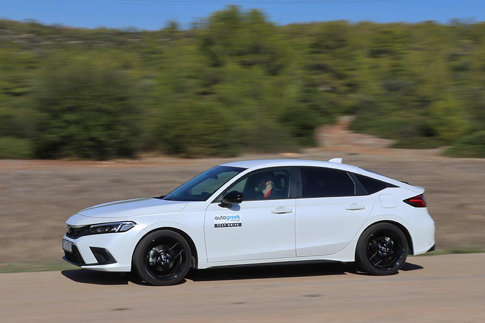 Ο τρόπος που πατάει και κινείται το νέο Honda Civic e:HEV προκαλεί θαυμασμό στον οδηγό του, γιατί το αυτοκίνητο είναι πάρα πολύ καλά στημένο στο δρόμο. Η νέα και πιο άκαμπτη πλατφόρμα μαζί με τις ιδανικά ρυθμισμένες ανεξάρτητες αναρτήσεις και την πολύ προσεγμένη ηχομόνωση, κάνουν θαύματα. Καταρχήν, το νέο Civic περνάει από λακκούβες, σαμαράκια, σπασίματα κ.λπ. χωρίς να ενοχλούνται οι επιβάτες του. Υπό πίεση ο χρήστης αισθάνεται το πλαίσιο να «δένει» το αυτοκίνητο με το οδόστρωμα, εκμεταλλευόμενο τις πολύ μικρές κλίσεις. Συν του ότι λαμβάνει πλούσια πληροφόρηση από το τιμόνι και έχει στη διάθεσή του κορυφαία σε αίσθηση και απόδοση φρένα.
