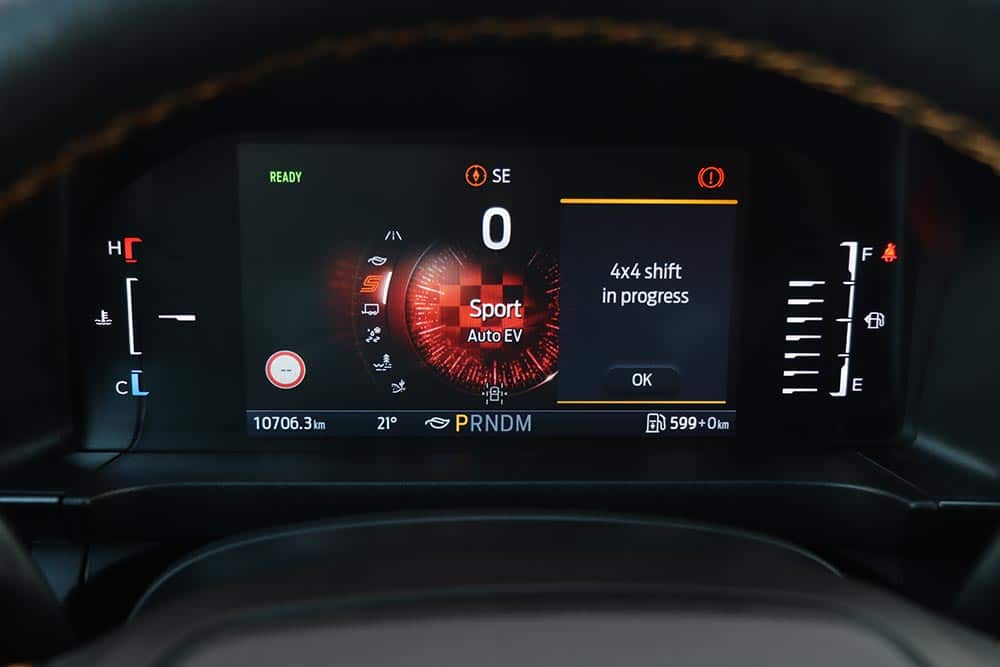 Το νέο Ford Ranger PHEV διαθέτει συνδυαστική ισχύ 281 ίππων στις 4.600 σ.α.λ. και φοβερή ροπή που φτάνει τα 697 Nm στις 2.500 σ.α.λ. Εξάλλου σε ένα τέτοιο όχημα η ροπή είναι μείζονος σημασίας, γιατί καλείται να σηκώνει έως 800 κιλά και να ρυμουλκεί έως 3,5 τόνους, από την εκκίνηση χωρίς να ζορίζεται και σε δύσβατα σημεία. Σε συνδυασμό και με τα προγράμματα της τετρακίνησης που αναλύουμε παρακάτω, το Ranger PHEV είναι ένα «άρμα» με πολιτική περιβολή. Αναφορικά με το PHEV σύνολο αποτελείται από το δυνατό τετρακύλινδρο turbo βενζινοκινητήρα 2.3 EcoBoost των 188 ίππων και 411 Nm ροπής στις 2.700 σ.α.λ. και το ηλεκτρομοτέρ των 102 ίππων, το οποίο τροφοδοτείται με ρεύμα από την μπαταρία των 11,8 kWh. Για τη μετάδοση της κίνησης φροντίζει το ομαλό σε λειτουργία αυτόματο κιβώτιο των 10 ταχυτήτων.