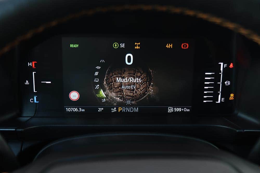 Ακόμα πιο ευχάριστο είναι σε χωμάτινες διαδρομές, όπου και εδώ οδηγός έχει σύμμαχο τα εξαιρετικά φρένα (συν την ανάκτηση) και το στιβαρό πλαίσιο, συν τα χωμάτινα ελαστικά. Φυσικά ανταποκρίνεται εντυπωσιακά και όταν το τερέν δυσκολεύει ή χρειαστεί αναρρίχηση. Ο χρήστης επιλέγει ένα από τα πολλά προγράμματα οδήγησης (Normal, Eco, Sport, Slippery, Tow/Haul, Mud/Ruts, Sand, Rock Crawl), βάζει τετρακίνηση, κλειδώνει και το κεντρικό διαφορικό, και δεν σταματά πουθενά. Η συμβολή του ηλεκτροκινητήρα είναι σημαντική και εδώ, αφού στις πολύ χαμηλές ταχύτητες, η ροπή έρχεται ακαριαία και επιτρέπει αργό, προσεκτικό ανέβασμα ακόμη και σε δύσκολες επιφάνειες.