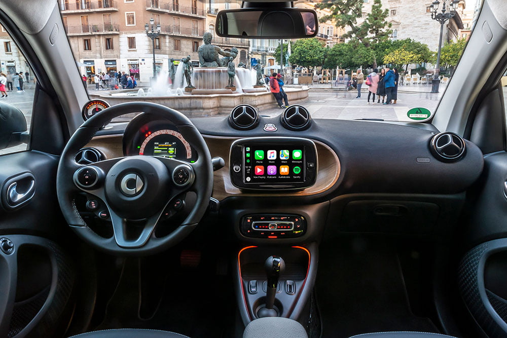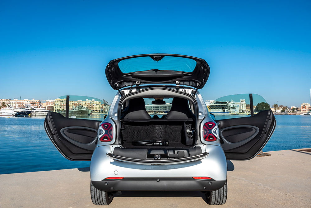 Από τα πρώτα μέτρα θα το αγαπήσετε, μιας και το μαζεμένων διαστάσεων και παιχνιδιάρικο αμάξωμα (2.695 χλστ.), χωράει παντού και το παρκάρισμα στο κέντρο παύει να είναι εφιάλτης. Αλλά κι όσο χρειαστεί να είστε μέσα στην καμπίνα, αυτό είναι απόλαυση. Αρχικά να σας πούμε πως μπορεί το μήκος να είναι λίγο μεγαλύτερο από ενός mega scooter, όμως η καμπίνα ικανοποιεί σε επίπεδο χώρων τους δυο επιβάτες. Αυτή είναι κατασκευασμένη από ποιοτικά υλικά με πολύ καλή συναρμογή, ενώ το τεχνολογικό προφίλ του smart τονίζουν η οθόνη αφής των 8 ιντσών του συστήματος πολυμέσων στο κέντρο του ταμπλό και ο πίνακας οργάνων με τις ψηφιακές ενδείξεις. Επίσης, το χαρακτηριστικό στρογγυλό όργανο δείχνει τη φόρτιση της μπαταρίας και την ισχύ. Πρόσθετα, ο οδηγός μέσω της εφαρμογής smart EQ control μπορεί από το κινητό του να μπορεί ανά πάσα στιγμή να ελέγχει την κατάσταση του αυτοκινήτου, τη φόρτιση της μπαταρίας, ή ακόμα και να ενεργοποιεί τον κλιματισμό.