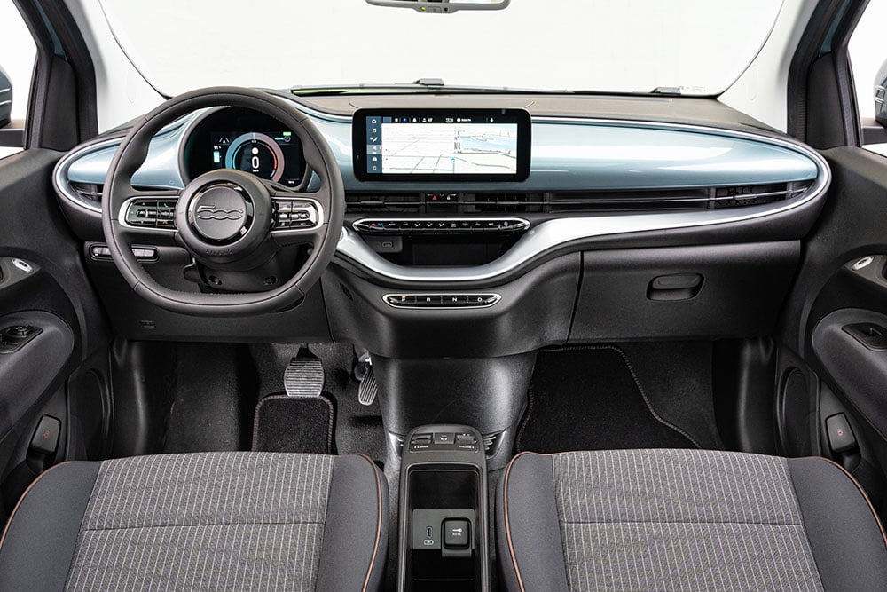 Για όσους θέλουν μεγαλύτερη αυτονομία, υπάρχει η μπαταρία 42 kWh που εξασφαλίζει αυτονομία άνω των 320 χλμ. στον κύκλο WLTP και περισσότερα από 460 χλμ. σε αστικές συνθήκες. Ο ηλεκτροκινητήρας αυτός αποδίδει 118 ίππους με την επιτάχυνση στο 0-100 χλμ./ώρα να ολοκληρώνεται σε 9 δλ. και την τελική ταχύτητα να περιορίζεται ηλεκτρονικά στα 150 χλμ./ώρα. Το νέο ηλεκτρικό 500 είναι εξαιρετικά προηγμένο και όσον αφορά στις επιλογές φόρτισης σε οικιακά ή δημόσια δίκτυα. Η έκδοση Action εφοδιάζεται με ενσωματωμένο φορτιστή 50 kW που επιτρέπει την ολοκλήρωση της φόρτισης (0-80%) σε δίκτυο DC σε λιγότερο από 30 λεπτά. Οι υπόλοιπες εκδόσεις διαθέτουν ενσωματωμένο φορτιστή 85 kW που ολοκληρώνει την αντίστοιχη διαδικασία σε 35 λεπτά, ενώ στο ίδιο δίκτυο μόλις 5 λεπτά φόρτισης αρκούν για την εξασφάλιση αυτονομίας περίπου 50 χλμ.