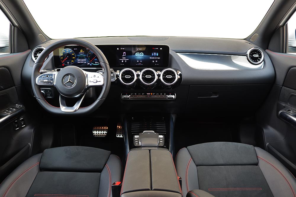 Στο εσωτερικό της GLA 250 e, οδηγός και επιβάτες απολαμβάνουν ευρυχωρία, σπορτίφ σχεδίαση και υψηλή ποιότητα κατασκευής. Αρχικά την παράσταση κλέβει η ενιαία τεχνοτροπία Widescreen, η οποία συνδυάζει δυο οθόνες 10,25 ιντσών (στάνταρ είναι 7 ιντσών), μία για τον πίνακα οργάνων και μία του συστήματος πολυμέσων. Στο πίσω κάθισμα υπάρχει αρκετός αέρας για τα πόδια και το κεφάλι, ακόμα και για τους πιο ψηλούς επιβάτες. Όσον αφορά το πορτ μπαγκάζ, έχει χωρητικότητα 385 λίτρα.