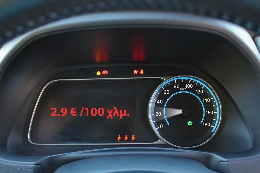 Σύμφωνα με αυτή την τιμή λοιπόν, το κόστος για 100 χλμ. οδήγησης και με βάση την εργοστασιακή κατανάλωση των 17 kWh/100 χλμ., ανέρχεται στα 1,99 ευρώ για 100 χλμ. Αν υπολογίσουμε και τις επιπλέον χρεώσεις για την αύξηση στην κατανάλωση του ρεύματος, το τελικό ποσό δεν ξεπερνάει τα 3 ευρώ/100 χλμ. (2,9 €/100 χλμ.)!