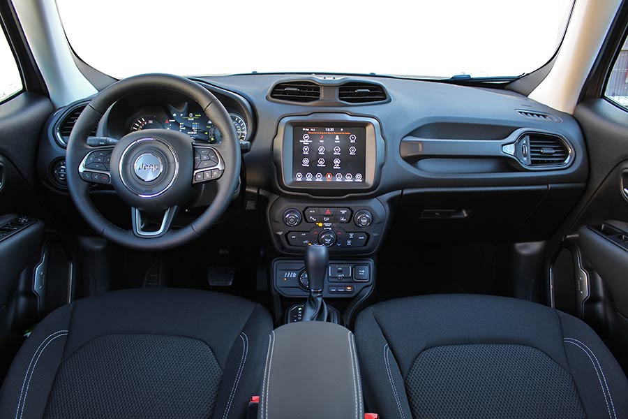Η καμπίνα του Renegade 4xe φέρει πολλά κοινά στοιχεία με εκείνα των θερμικών εκδόσεων. Διαφορές συναντώνται στον πίνακα οργάνων, στα μπουτόν Hybrid, Electric και E–save και στο ηχοσύστημα Uconnect με την οθόνη αφής των 8,4 ιντσών με τις επιπλέον εφαρμογές. Οι επιβάτες θα βολευτούν με άνεση, με τους πίσω να έχουν στη διάθεσή τους ικανοποιητικό αέρα για τα πόδια. Ο χώρος αποσκευών έχει χωρητικότητα 330 λίτρων, ενώ σε αυξημένο επίπεδο βρίσκεται κι η πρακτικότητα με τον ικανοποιητικό αριθμό θηκών για τα καθημερινά σας αντικείμενα. Την πολύ καλή εικόνα συμπληρώνει και η προσεγμένη ποιότητα κατασκευής, με το μαλακό πλαστικό στο άνω τμήμα του ταμπλό και την καλή συναρμογή.
