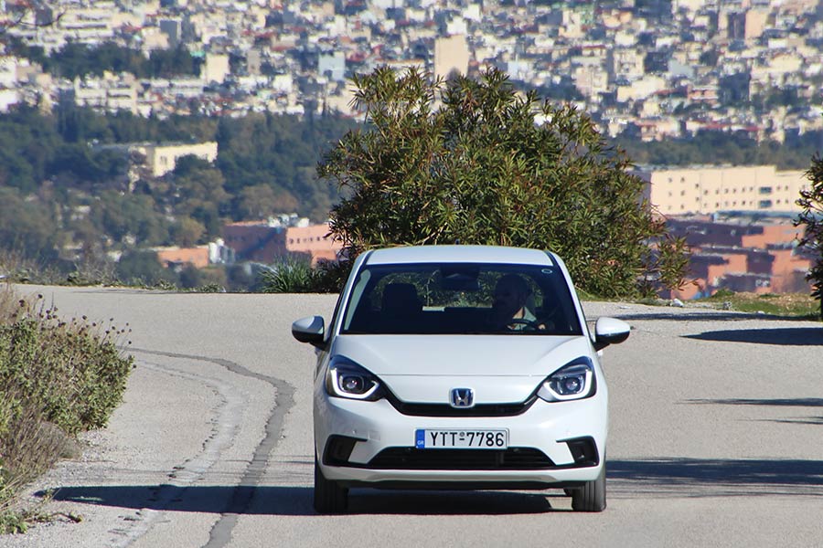 Το υβριδικό Honda Jazz σε κερδίζει με το καλημέρα, αφού πρωτίστως το εμπιστεύεσαι μιας και σου αποπνέει ένα έντονο αίσθημα σιγουριάς. Στον αυτοκινητόδρομο, το Jazz κινείται με ευκολία σε ταχύτητες ταξιδιού, με την ποιότητα κύλισης να είναι πολύ καλή όπως κι η ηχομόνωση. Συνδυασμός που προσφέρει ξεκούραστα κι ασφαλή ταξίδια. Από εκεί κι έπειτα το Jazz παραμένει σταθερό και στο επαρχιακό δίκτυο, με τις κλίσεις στις στροφές να είναι λογικές και με την πρόσφυση πολύ καλή. Το εξαιρετικά ευχάριστο είναι πως ακόμα κι υπό πίεση δεν θα εμφανίσει την κλασική υποστροφική αντίδραση, που έχει η πλειοψηφία των υβριδικών αυτοκινήτων. Η ρύθμιση της ανάρτησης αφήνει γλυκά την ουρά να γλιστρήσει, ευθυγραμμίζοντας το εμπρός μέρος με το apex και σας τοποθετεί όπως πρέπει. Τέλος, τα φρένα είναι αποδοτικά και διαθέτουν και καλή αίσθηση, παρά την ανάκτηση ενέργειας. Το πεντάλ προσφέρει εξαιρετική πληροφόρηση και σου επιτρέπει να φρενάρεις πάντα όσο θες.