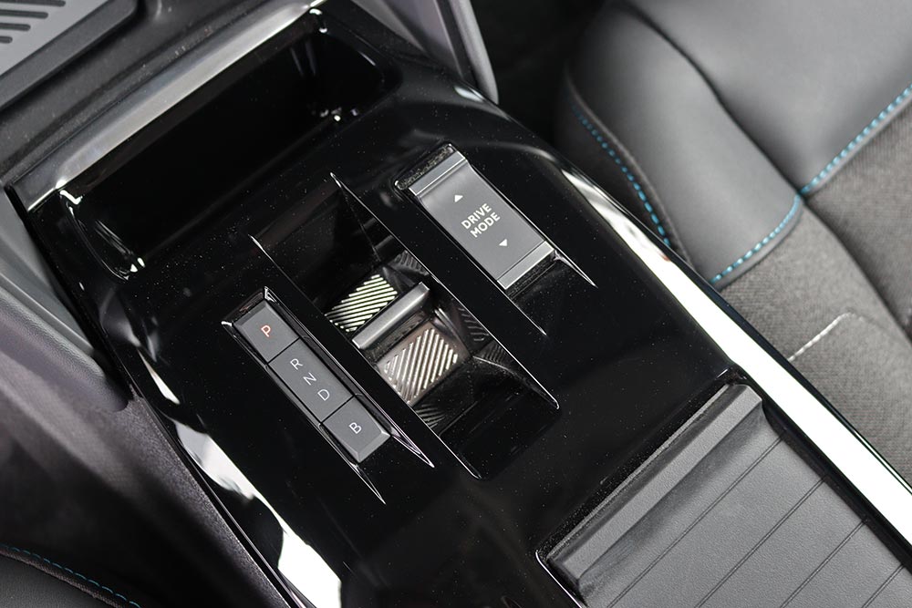 Η καμπίνα βρίθει πολυτέλειας κάτι που γίνεται ξεκάθαρο με την πρώτη επαφή. Άπαντες θα εκτιμήσουν τα πολύ αναπαυτικά καθίσματα Advanced Comfort, που θα τους προσφέρουν ξεκούραστες διαδρομές. Παρέχουν μια ευχάριστη αίσθηση άνεσης, ευεξίας και υποστήριξης, δίνοντας στους επιβάτες την εντύπωση ότι κάθονται σε μια πολυθρόνα και είναι απομονωμένοι από το δρόμο, στοιχείο στο οποίο συμβάλλει σημαντικά κι η απουσία οποιουδήποτε μηχανικού θορύβου λόγω ηλεκτροκινητήρα. Ο οδηγός έχει στη διάθεσή του έναν ψηφιακό πίνακα οργάνων, αλλά και τη μεγάλη οθόνη των 10 ιντσών του infotainment. Στον πίνακα οργάνων, ο οδηγός μπορεί να ενημερωθεί για το επίπεδο φόρτισης ή αυτονομίας του αυτοκινήτου και να έχει παράλληλα πρόσβαση σε τρεις βασικές πληροφορίες: την ένδειξη ισχύος, τη ροή ενέργειας, ή την κατανάλωση που συνδέεται με τη λειτουργία κλιματισμού.