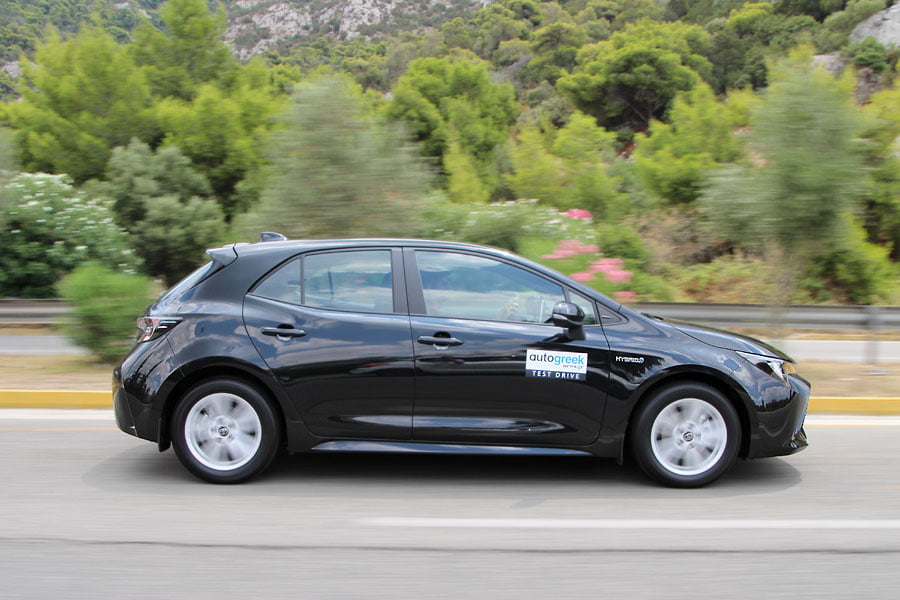 Το γνωστό υβριδικό σύνολο του Corolla Hybrid αποδίδει συνδυαστικά 122 ίππους. Αποτελείται από ένα κινητήρα βενζίνης 1.8 λτ. απόδοσης 90 ίππων και 142 Nm ροπής και ένα ηλεκτρικό μοτέρ μόνιμου μαγνήτη με ισχύ 72 ίππων και 163 Nm ροπής. Η κίνηση μεταδίδεται μέσω ενός e-CVT κιβωτίου ταχυτήτων, με το 0-100 χλμ./ώρα να ολοκληρώνεται σε 10,9 δλ. και τη μέγιστη ταχύτητα να φτάνει τα 180 χλμ./ώρα. Σύμφωνα με την Toyota, η μεικτή κατανάλωση είναι 4,5-4,9 λτ./100 χλμ. και οι εκπομπές CO2 είναι 101-111 γρ./χλμ. (μηδενικά τέλη κυκλοφορίας). Ωστόσο, και πράξη, η κατανάλωση βρίσκεται πολύ χαμηλά (5,3 λτ./100 χλμ. στη δοκιμή), ενώ ο οδηγός μπορεί να διανύσει εκατοντάδες μέτρα χωρίς να εμπλακεί ο βενζινοκινητήρας, ειδικά σε επίπεδους δρόμους και με προσεγμένη πίεση στο πεντάλ του γκαζιού. Ο θερμικός κινητήρας ενεργοποιείται άμεσα όταν χρειαστεί, όμως αυτό που μπορεί να ενοχλήσει είναι ο θόρυβος που παράγει το 1.800άρι μοτέρ κατά την πλήρη επιτάχυνση.