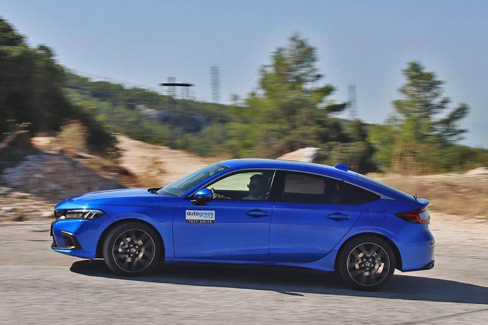 Η Honda έχει κάνει το θαύμα της και ως προς τον τρόπο που ταιριάζει το αποδοτικό υβριδικό σύνολο με το εξαιρετικά ισορροπημένο οδηγικό του προφίλ. Το e:HEV συνδυάζει δυο ηλεκτροκινητήρες ισχύος 184 ίππων και 315 Nm ροπής που δίνουν την κίνηση και ένα 2λιτρο βενζινοκινητήρα κύκλου Atkinson με 143 ίππους. Η μετάδοση γίνεται μέσω κιβωτίου eCVT το οποίο σε λειτουργία μοιάζει σαν ένα πολύ γρήγορο αυτόματο διπλού συμπλέκτη και σε καμία περίπτωση με μονής σχέσης e-CVT. Ο θερμικός κινητήρας ακούγεται από καθόλου έως ελάχιστα, ενώ η αυτοφορτιζόμενη μπαταρία των 1,05 kWh εξασφαλίζει 100% ηλεκτρική κίνηση σε αστικούς κυρίως ρυθμούς. Η μεικτή πραγματική κατανάλωση βρίσκεται χαμηλά στα 5,3 λίτρα/100 χλμ. και πέφτει εύκολα στην πόλη. Το υβριδικό σύνολο εξασφαλίζει γρήγορες επιταχύνσεις (0-100 χλμ./ώρα σε 7,8 δλ.) με εκπομπές CO2 108 γρ./χλμ. (μηδενικά τέλη κυκλοφορίας). Το νέο Civic e:HEV είναι πολύ άνετο, ιδιαίτερα στιβαρό και μπορεί να ξεδιπλώσει τη δυναμική του πλευρά σε μια «φιδίσια» ορεινή διαδρομή, ειδικά με την επιλογή Sport (υπάρχουν ακόμα τα προγράμματα Eco, Normal και Individual). Το αυτοκίνητο στρίβει με μικρές κλίσεις και υψηλά περιθώρια πρόσφυσης, δίνοντας την αίσθηση μιας σπορ κατασκευής, χάρη και στις ανεξάρτητες αναρτήσεις του λειτουργούν υποδειγματικά, ενώ το τιμόνι όσο βαρύ πρέπει και παρέχει πλούσια πληροφόρηση.
