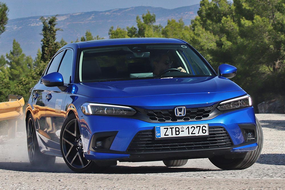 Η Honda έχει κάνει το θαύμα της και ως προς τον τρόπο που ταιριάζει το αποδοτικό υβριδικό σύνολο με το εξαιρετικά ισορροπημένο οδηγικό του προφίλ. Το e:HEV συνδυάζει δυο ηλεκτροκινητήρες ισχύος 184 ίππων και 315 Nm ροπής που δίνουν την κίνηση και ένα 2λιτρο βενζινοκινητήρα κύκλου Atkinson με 143 ίππους. Η μετάδοση γίνεται μέσω κιβωτίου eCVT το οποίο σε λειτουργία μοιάζει σαν ένα πολύ γρήγορο αυτόματο διπλού συμπλέκτη και σε καμία περίπτωση με μονής σχέσης e-CVT. Ο θερμικός κινητήρας ακούγεται από καθόλου έως ελάχιστα, ενώ η αυτοφορτιζόμενη μπαταρία των 1,05 kWh εξασφαλίζει 100% ηλεκτρική κίνηση σε αστικούς κυρίως ρυθμούς. Η μεικτή πραγματική κατανάλωση βρίσκεται χαμηλά στα 5,3 λίτρα/100 χλμ. και πέφτει εύκολα στην πόλη. Το υβριδικό σύνολο εξασφαλίζει γρήγορες επιταχύνσεις (0-100 χλμ./ώρα σε 7,8 δλ.) με εκπομπές CO2 108 γρ./χλμ. (μηδενικά τέλη κυκλοφορίας). Το νέο Civic e:HEV είναι πολύ άνετο, ιδιαίτερα στιβαρό και μπορεί να ξεδιπλώσει τη δυναμική του πλευρά σε μια «φιδίσια» ορεινή διαδρομή, ειδικά με την επιλογή Sport (υπάρχουν ακόμα τα προγράμματα Eco, Normal και Individual). Το αυτοκίνητο στρίβει με μικρές κλίσεις και υψηλά περιθώρια πρόσφυσης, δίνοντας την αίσθηση μιας σπορ κατασκευής, χάρη και στις ανεξάρτητες αναρτήσεις του λειτουργούν υποδειγματικά, ενώ το τιμόνι όσο βαρύ πρέπει και παρέχει πλούσια πληροφόρηση.