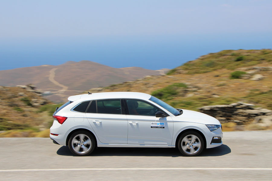 Η άνεση είναι κυρίαρχο «συστατικό» του Scala και στο δρόμο. Άλλωστε, το πρώτο στοιχείο που εντυπωσιάζει στην οδήγηση είναι το ισοπεδωτικό φιλτράρισμα των διαφόρων ανωμαλιών του οδοστρώματος. Μαζί με το ελαφρύ τιμόνι, το Scala κάνει τη ζωή του χρήστη του πιο ξεκούραση στις καθημερινές αστικές μετακινήσεις. Παράλληλα, το στιβαρό πλαίσιο (πλατφόρμα MQB-A0), μαζί με το μακρύ μεταξόνιο των 2.649 χλστ. και τις κατάλληλα ρυθμισμένες αναρτήσεις, προσφέρουν πολύ καλή σταθερότητα στις ευθείες και στις στροφές.