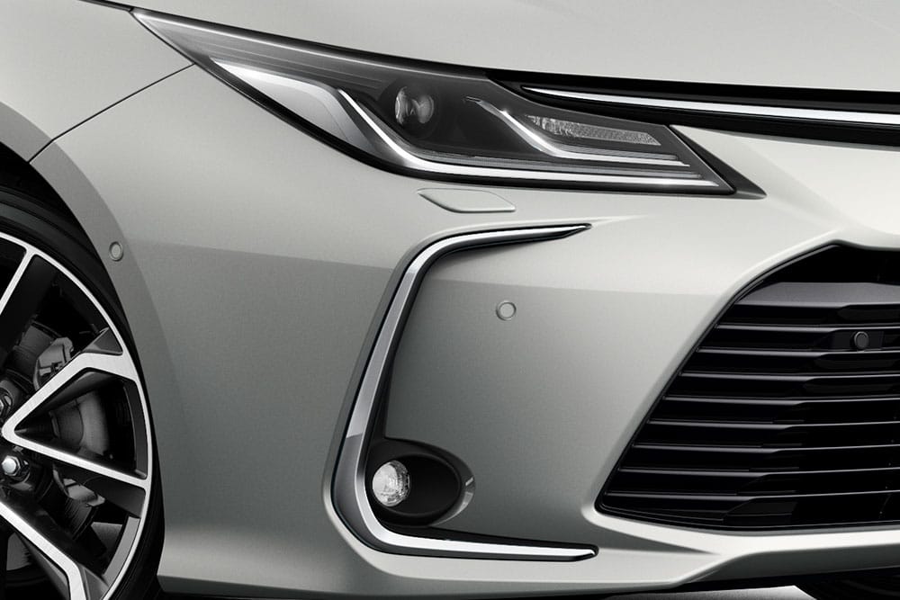 Το τριών όγκων αμάξωμα των 4.630 χλστ. μήκους διαθέτει κομψό σχεδιασμό, με αιχμηρό εμπρός άκρο και σφηνοειδές προφίλ. Το εσωτερικό του είναι ίδιο με εκείνο του Corolla Hatchback και εμφανίζει μινιμάλ αισθητική και προσεγμένη ποιότητα, με χρήση μαλακών πλαστικών σε πολλές επιφάνειες. Στο κέντρο του ταμπλό κυριαρχεί η εύχρηστη οθόνη των 8 ιντσών του συστήματος πολυμέσων ToyotaTouch 2 και πιο κάτω είναι τα χειριστήρια του κλιματισμού. Το μακρύ μεταξόνιο των 2.700 χλστ. ευνοεί τους χώρους για τους πίσω επιβάτες, ενώ τα 471 λίτρα του πορτ μπαγκάζ είναι αρκετά για τις ανάγκες μιας τετραμελούς οικογένειας.