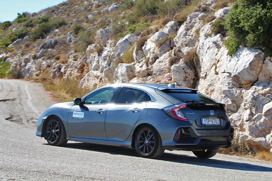 Όπου κι αν αποφασίσετε να κινηθείτε με το Civic το σίγουρο είναι πως θα ενθουσιαστείτε με την οδική του συμπεριφορά. Στην εθνική οδό η ευθυβολία του ακόμα και με απαγορευτικές ταχύτητες είναι αξιομνημόνευτη, ενώ σε εξαιρετικό επίπεδο είναι κι η ποιότητα κύλισης! Αλλά εκεί που θα το ευχαριστηθεί ο οδηγός είναι στις καμπές κάθε είδους! Ακόμα και στο όριο το Honda Civic θα συμπεριφερθεί ασφαλώς, δηλώνοντάς σου απερίφραστα ότι αντέχει κι άλλη πίεση! Οι κλίσεις από τις ανεξάρτητες σε όλους τους τροχούς αναρτήσεις είναι περιορισμένες, με το τιμόνι να παρέχει ανόθευτη την πληροφόρηση από τους εμπρός τροχούς. Ο μυημένος οδηγός μπορεί να τοποθετήσει όπως θέλει το ιαπωνικό μοντέλο πριν τη στροφή, ενώ το εντυπωσιακό είναι πως η λέξη υποστροφή δεν υπάρχει στο λεξικό του Civic.