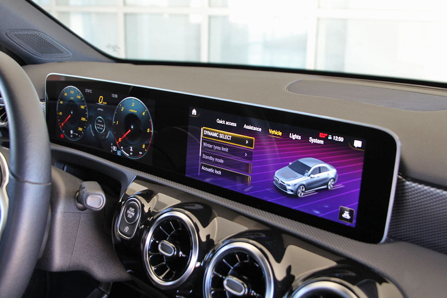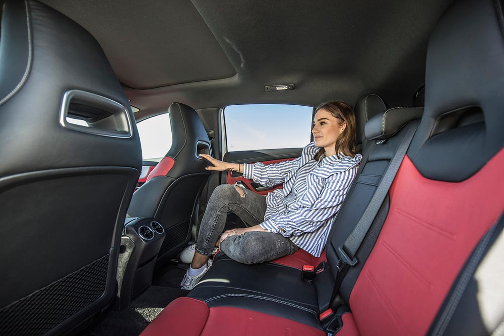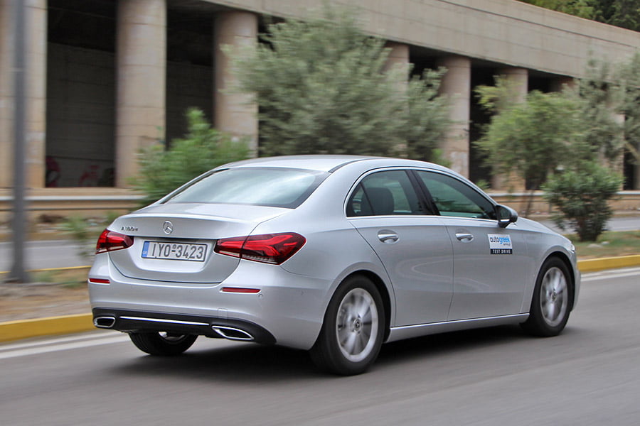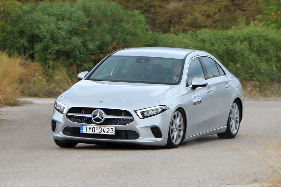 Επισφράγιση του πολυτελούς χαρακτήρα της Α-Class είναι η κατασκευή της καμπίνας, η οποία είναι όμοια τόσο στην hatchback, όσο και στη sedan έκδοση. Τα υλικά είναι ποιοτικά με μαλακά πλαστικά, στιβαρά και με πολύ καλή συναρμογή. Στην βάση της κεντρικής κονσόλας υπάρχουν τα χειριστήρια αεροπορικού τύπου και το touchpad για το σύστημα infotainment. Βέβαια, το τελευταίο ο χρήστης μπορεί να το «δουλέψει» και μέσω της οθόνης αφής, αλλά και με φωνητικές εντολές. Μεγάλες διαφορές μεταξύ των δυο αμαξωμάτων δεν θα συναντήσετε ούτε στον τομέα των χώρων, μιας κι οι βασικές διαστάσεις, όπως το μεταξόνιο και το εξωτερικό πλάτος, παραμένουν αμετάβλητα, με δυο ενήλικες επιβάτες να βολεύονται με άνεση στις πίσω θέσεις.