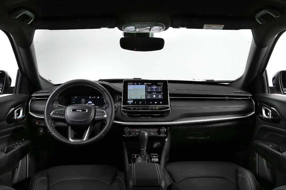 Η ποιότητα του Compass είναι έκδηλη με το που κάποιος ανοίξει την πόρτα και κάτσει στο πολυτελές εσωτερικό! Οι καθαρές γραμμές και η κορυφαία επιλογή υλικών συμβάλουν στη δημιουργία μιας κομψής καμπίνας που αποπνέει υψηλή ποιότητα και πολυτέλεια. Το ταμπλό είναι ολοκαίνουργιο και ξεχωρίζει η μεγάλη οθόνη αφής για το infotainment, διάστασης 10,1 ιντσών, που μοιάζει να αιωρείται, ενώ εξίσου εντυπωσιακός είναι ο ψηφιακός πίνακας οργάνων 10,25 ιντσών. Στα σχεδιαστικά πλεονεκτήματα θα βάλουμε επίσης τις οριζόντιες λωρίδες που διατρέχουν το ταμπλό από άκρη σε άκρη, τους όμορφα καμουφλαρισμένους αεραγωγούς, αλλά και το καινούργιο τιμόνι.
