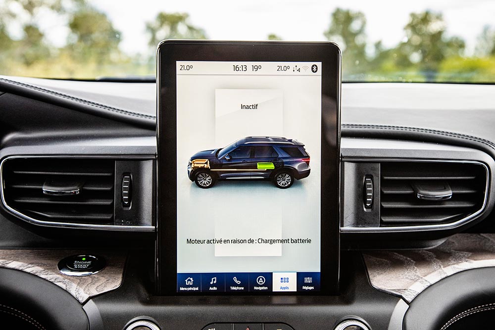 Οι ανήσυχοι οδηγοί θα εξερευνήσουν κάθε πτυχή των προγραμμάτων λειτουργίας του Terrain Management System, που διαθέτει το νέο Explorer (Eco, Normal, Sport, Slippery, Deep Snow/Sand, Trail και Tow με ξεχωριστά γραφικά φυσικά για το καθένα στον πίνακα οργάνων). Επιπλέον το υβριδικό σύνολο έχει 4 προφίλ: Αποκλειστικά ηλεκτρική κίνηση (EV Now), φόρτιση μπαταρίας από τον βενζινοκινητήρα (ΕV Charge), διατήρηση μπαταρίας σε συγκεκριμένο επίπεδο φόρτισης για μετέπειτα χρήση (EV Later) και φυσικά υβριδική λειτουργία και αυτόματη εναλλαγή ή συνεργασία κινητήρα και ηλεκτροκινητήρα (EV auto).