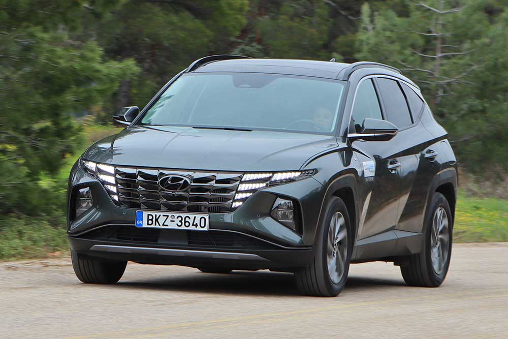 Πριν όμως από όλα αυτά, το Tucson κλέβει τις πρώτες εντυπώσεις με τον ιδιαίτερα ξεχωριστό και δυναμικό εξωτερικό του σχεδιασμό. Μαζί με τις τονισμένες του διαστάσεις (μήκος 4.500 χλστ., πλάτος 1.865 χλστ., ύψος 1.650 χλστ. και μεταξόνιο 2.680 χλστ.) επιβάλλεται στο δρόμο και δεν περνάει απαρατήρητο. Αντίστοιχα και το εσωτερικό του ενθουσιάζει με την πρώτη ματιά, ταιριάζοντας premium και high-tech χαρακτηριστικά. Το ταμπλό με τις απαλές καμπύλες «αγκαλιάζει» τις δύο οθόνες, τον ψηφιακό πίνακα οργάνων των 10,25 ιντσών και την οθόνη αφής 8 ιντσών (10,25 ιντσών στις πιο ακριβές εκδόσεις). Οι περισσότερες επιφάνειες του ταμπλό και των εμπρός θυρών καλύπτονται από μαλακές επενδύσεις, ενώ η στιβαρή συναρμογή και οι ενώσεις ακριβείας τονίζουν την προσοχή που έχει δοθεί στην κατασκευή του αυτοκινήτου. Όσον αφορά τους χώρους, έως 5 άτομα θα κάτσουν χωρίς παραχωρήσεις, έχοντας στη διάθεσή τους ένα μεγάλο πορτ μπαγκάζ 577 λίτρων.