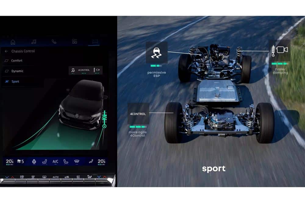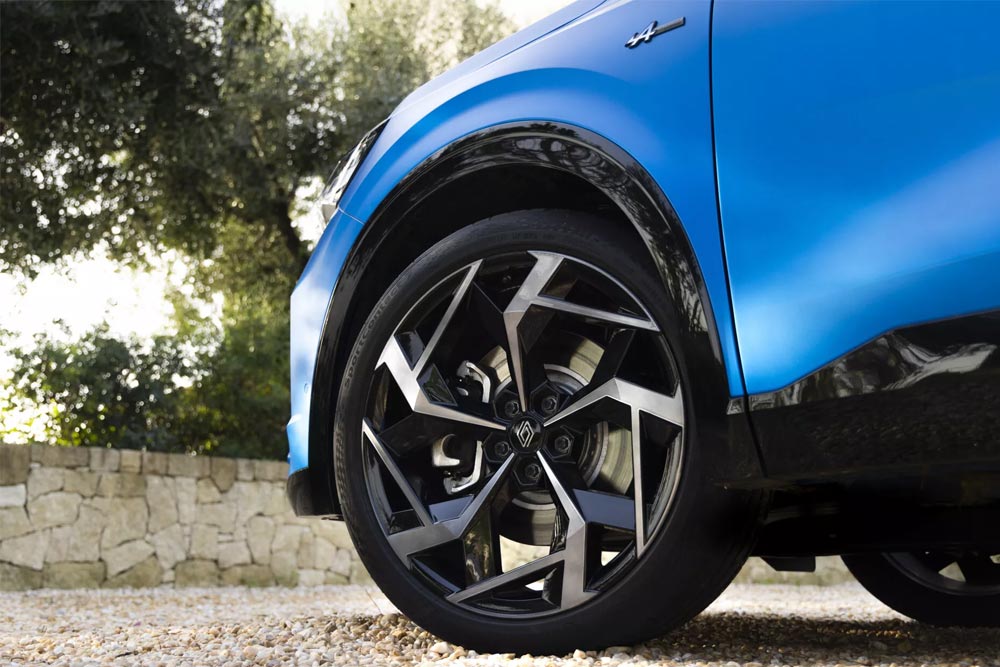 Το Rafale Hyper Hybrid E-Tech διαθέτει μόνιμη τετρακίνηση και σύστημα τετραδιεύθυνσης, με κατανομή ροπής που προσαρμόζεται ανάλογα με την ταχύτητα και το πρόγραμμα οδήγησης. Οι επιλογές Multi-Sense (Eco, Comfort, Sport, Snow) επιτρέπουν στον οδηγό να ρυθμίζει την απόδοση ισχύος, την κατανομή ροπής και τη συμπεριφορά των αναρτήσεων, εξασφαλίζοντας τόσο οικονομική οδήγηση όσο και σπορ αίσθηση, ανάλογα με τις συνθήκες. Συγκεκριμένα το πρόγραμμα οδήγησης Eco δίνει ισχύ από 185 έως 300 ίππους για οικονομία, το Comfort 250 έως 300 ίππους, για ισορροπημένη οδήγηση, το Sport και τους 300 ίππους με έμφαση στη δυναμική οδήγηση και έως 70% της ροπής στους πίσω τροχούς. Τέλος στο Snow έχει ισχύ 250 έως 300 ίππους, σταθερή κατανομή 50%-50% και ειδικές ρυθμίσεις του ESP για μέγιστη πρόσφυση. Η έκδοση Atelier Alpine ανεβάζει τον πήχη της δυναμικής οδήγησης με ειδικά αμορτισέρ, έξυπνη ενεργή ανάρτηση με κάμερα προληπτικής δράσης, 4Control Advanced και ζάντες 21 ιντσών. Τρεις εργοστασιακά προγραμματισμένες ρυθμίσεις (Comfort, Dynamic και Sport) επιτρέπουν εύκολη προσαρμογή και βέλτιστη συμπεριφορά στις στροφές, με ελάχιστες κλίσεις αμαξώματος, κορυφαία στην κατηγορία.