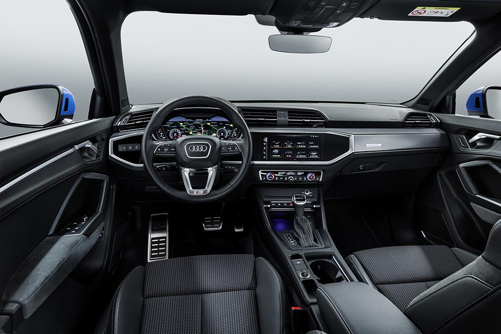 Η ίδια αρχή διέπει και τις χάρες του εσωτερικού κόσμου του Q3, που παραδίδει σεμινάρια συνδυασμού ποιότητας κατασκευής, τεχνολογίας και ευρυχωρίας. Με το που ανοίξεις την πόρτα αντιλαμβάνεσαι πως έχεις μπροστά σου μια εξαιρετική premium κατασκευή, με καταπληκτικά υλικά και κορυφαίου επιπέδου ψηφιακότητα, όπως φανερώνεται από το στάνταρ ψηφιακό πίνακα οργάνων των 10,25 ιντσών και την οθόνη αφής των 10,1 ιντσών, που φιλοξενεί -μεταξύ όλων- τα συστήματα πολυμέσων και πλοήγησης.