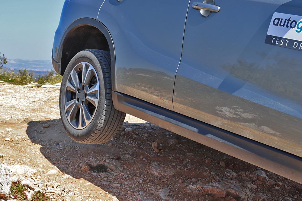 Για τη μετάδοση της κίνησης σε όλους τους τροχούς φροντίζει το 6άρι χειροκίνητο κιβώτιο, μαζί με το σύστημα τετρακίνησης AllGrip. Ο οδηγός μπορεί να επιλέξει μέσω του χειριστηρίου στην κεντρική κονσόλα τα προγράμματα Auto, Sport, Snow και Lock. Μεταξύ αυτών τα δύο τελευταία είναι για τα πιο δύσκολα εκτός δρόμου, αφού το ένα προσφέρει την ιδανική διαμόρφωση για χιονισμένες και ολισθηρές επιφάνειες, ενώ το άλλο κατανέμει συνεχώς μεγάλη ποσότητα ροπής στους πίσω τροχούς ώστε να εξασφαλιστεί μέγιστη πρόσφυση. Όσοι είναι λάτρεις τη φύσης και δεν «φοβούνται» πέτρες και έντονες εδαφικές ανωμαλίες, θα ικανοποιηθούν ακόμα περισσότερο με ένα σετ μεικτών ελαστικών, αφού τα εργοστασιακά είναι ασφάλτινα. Άλλωστε και εντός δρόμου το Vitara είναι ευχάριστο και αρκετά σταθερό, χάρη και στη σφιχτή ρύθμιση των αναρτήσεών του.
