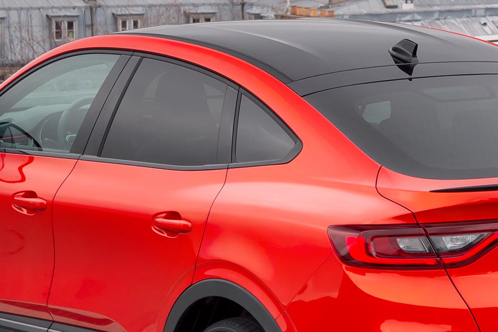 Πέρα από τις εξοπλιστικές και μηχανολογικές αρετές του Renault Arkana, το coupe SUV της γαλλικής μάρκας ξεχωρίζει με τη μοναδική του εξωτερική εμφάνιση. Η εμφατική του σχεδίαση συνδυαστικά με τις πληθωρικές του διαστάσεις, καθιστούν το Arkana ως ένα από τα πλέον ενδιαφέροντα αυτοκίνητα που είναι διαθέσιμα αυτή τη στιγμή στην ελληνική αγορά. Το Arkana χρησιμοποιεί την αρθρωτή πλατφόρμα CMF-B του ομίλου, με το μήκος του να αγγίζει τα 4.568 χλστ., το πλάτος τα 1.800 χλστ., το ύψος τα 1.571 χλστ. και το μεταξόνιο τα 2.720 χλστ., ενώ η απόσταση από το έδαφος βρίσκεται στα 200 χλστ., νούμερο που επιτρέπει στο Arkana να κινηθεί και σε βατές εκτός ασφάλτου διαδρομές. Σε επίπεδο σχεδίασης το εμπρόσθιο μέρος θα σας κεντρίσει το ενδιαφέρον χάρη στα full LED φωτιστικά σώματα σχήματος «C». Εκεί όμως πραγματικά που θα σταθείτε για ώρα και θα το παρατηρείτε, είναι στο προφίλ του, μιας και θα σας ενθουσιάσει ο τρόπος με τον οποίο χαμηλώνει η οροφή προς τα πίσω, καταλήγοντας σε μια αεροτομή. Πίσω, τα φωτιστικά σώματα αξιοποιούν και αυτά την υπογραφή «C» με μία λωρίδα που τα ενώνει νοητά, δίνοντας έμφαση στο πλάτος του αυτοκινήτου.