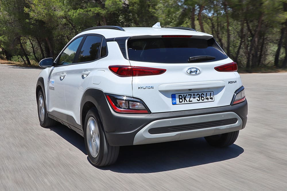 Ο οδηγός του Kona αντιλαμβάνεται και εκτιμά δεόντως το γεγονός ότι είναι ένα εύκολο στους χειρισμούς αυτοκίνητο και ευχάριστο. Οι αναρτήσεις με την σχετικά σφιχτή ρύθμιση φιλτράρουν ικανοποιητικά τις ανωμαλίες του οδοστρώματος, ενώ η ποιότητα κύλισης ξεχωρίζει ευχάριστα. Εκτός αστικού περιβάλλοντος και σε πιο σβέλτους ρυθμούς, ο έλεγχος των αντιδράσεων του αμαξώματος είναι αρκετά άμεσος και οι κλίσεις του περιορισμένες, εμπνέοντας σιγουριά στον οδηγό. Το τιμόνι είναι άμεσο και ακριβές, ενώ το κιβώτιο ταχυτήτων έχει καλή αίσθηση κατά το κούμπωμα. Τέλος, τα φρένα είναι δυνατά και με προοδευτική διαδρομή στο πεντάλ.