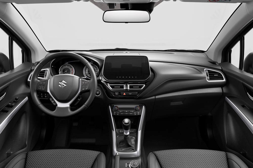 Βελτιωμένη είναι και η καμπίνα του S-Cross, τόσο σε ποιότητα, όσο και σε τεχνολογία, ειδικά με την προσθήκη της νέας οθόνης των 9 ιντσών (στάνταρ στο GLX). Στα θετικά του εσωτερικού ανήκουν η πολύ καλή εργονομία και η ευρυχωρία. Μια τετραμελής παρέα ή οικογένεια θα φιλοξενηθεί άνετα, γεγονός που αφορά και το πορτ μπαγκάζ των 430 λίτρων.