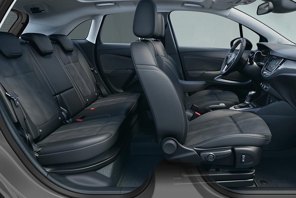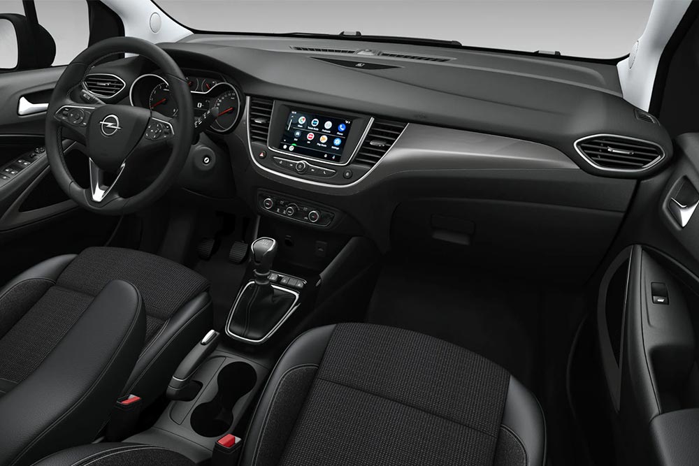 Περνώντας στο εσωτερικό του Opel Crossland, γίνεται αμέσως αντιληπτή η προσοχή που έχει δοθεί στην κατασκευή του, στην πρακτικότητα και στους χώρους. Το ταμπλό είναι επενδυμένο στο πάνω μέρος του από μαλακό πλαστικό και η συναρμογή των επιμέρους τμημάτων του είναι γεροδεμένη. Την πρακτικότητα ενισχύουν η εργονομία, γιατί όλα βρίσκονται εκεί που τα περιμένει ο οδηγός, όπως και οι αρκετές και βολικές θήκες για τα καθημερινά αντικείμενα. Στο ανώτερο σημείο της κεντρικής κονσόλας είναι τοποθετημένη η εύχρηστη στο χειρισμό της οθόνη του συστήματος infotainment των 7 ιντσών. Σε επίπεδο χώρων, οι εμπρός επιβάτες κάθονται άνετα, όπως αντίστοιχα και οι πίσω, αφού υπάρχει επαρκής αέρας για το κεφάλι και τα πόδια τους. Μεγάλος για την κατηγορία είναι και ο χώρος αποσκευών των 410 λίτρων, όπου με την προσθήκη του προαιρετικού συρόμενου πίσω καθίσματος απογειώνεται η ευελιξία του εσωτερικού και φτάνει έως τα 520 λίτρα (1.255 λτ. με πεσμένα τα πίσω καθίσματα).