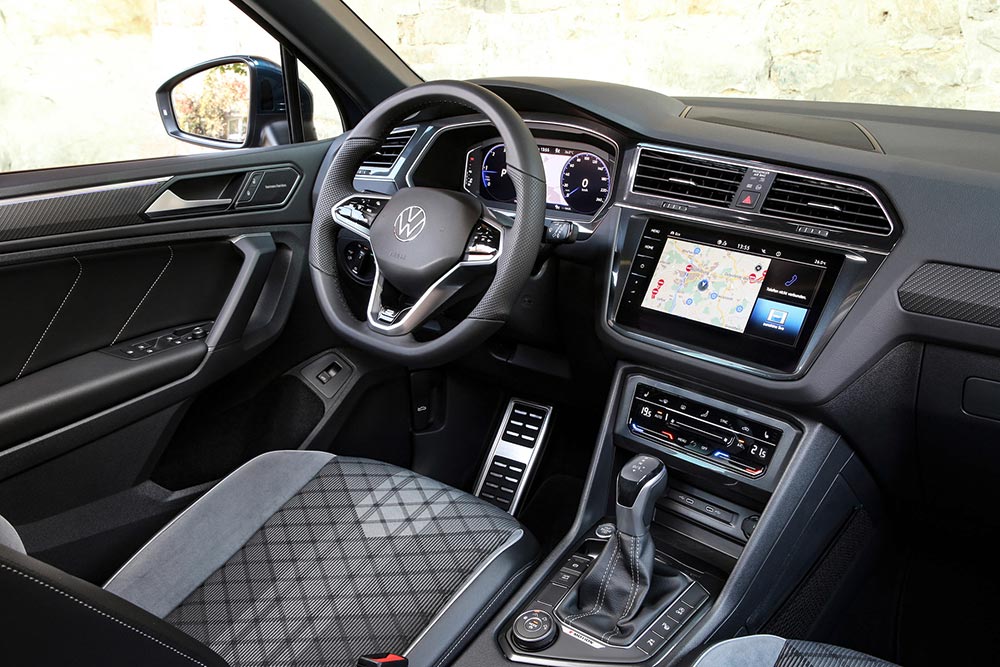 Με το πακέτο R-Line Black Style, εμφανίζεται ακόμα πιο συναρπαστικό και ξεχωρίζει μεταξύ άλλων, το κομψό λογότυπο R-Line σε διχρωμία στη μάσκα, τα μαύρα γυαλιστερά καλύμματα καθρεφτών και διακοσμητικά πλαίσια γύρω από τα παράθυρα, καθώς και τα φιμέ πίσω παράθυρα. Οι ζάντες ελαφρού κράματος των 19 ιντσών, επίσης σε μαύρο χρώμα, συμπληρώνουν ιδανικά την εμφάνιση αυτού του ξεχωριστού Tiguan, ενώ εναλλακτικά μπορεί να συνδυαστεί με 20άρες ζάντες.